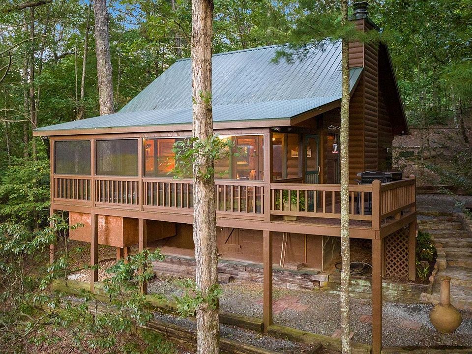 Welcome to this remarkable turn-key cabin (upscale furnishings), nestled in a storybook setting that seamlessly combines tranquility w the comforts of a well-maintained property in a successful short term rental community! Surrounded by breathtaking long-range mountain views, this magnificent property offers a serene escape from everyday life. The exterior of the cabin greets you with a gated entrance & professionally hardscaped grounds, setting the stage for a visually stunning retreat. As you step inside, prepare to be impressed by the elegant features & thoughtful design that await you. The kitchen boasts beautiful granite countertops & custom cabinetry, perfectly complemented by warm hardwood floors that flow throughout. Cathedral ceilings add a touch of grandeur, creating an open & spacious atmosphere. Cozy up by the stone fireplace, creating the perfect ambiance for unwinding & enjoying the mountain serenity. The cabin features 2 br's on the main floor, offering convenience & comfort for you & your guests. Additionally, the large loft provides versatility & can serve as a 3rd br or a multi-purpose space to suit your needs. One of the highlights of this cabin is the expanded screened-in deck on the main level. This outdoor oasis allows you to soak in the beauty of your natural surroundings while maintaining your privacy. The terrace level provides easy access to optional recreational activities as well!