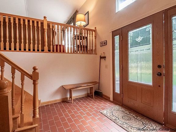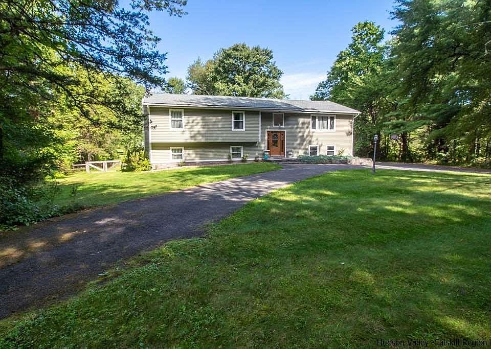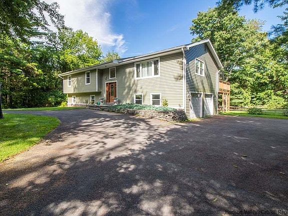 ROOM FOR EVERYONE!- This versatile high ranch offers a perfect floor plan adaptable to a multitude of uses in a bucolic setting just minutes to the historic hamlet shops and services of Stone Ridge and High Falls. The expansive 2500+ SF interior features a spacious and welcoming foyer leading up to the main living level. Warmed by lovely hardwood floors, this level features a vaulted living room sunlit by a large picture window, spacious kitchen with island open to comfortable dining space with French doors to deck for al fresco dining and 3 generous bedrooms including an ensuite MBR with it's own private deck for quiet relaxation. Don't miss the vaulted and pine clad 3 season screen porch which will keep you in the fresh air even when it's raining. Sip your wine, read a book, take a nap. It's up to you. The finished walk-out lower level offers an expansive family/media room with a cozy full wall raised hearth brick fireplace. The perfect place to chase winter's chill. There's also another bedroom and full bath for guests, extended family or home office for the remote worker. Central AC keeps you cool in the summer. This home offers the perfect combination of space, location and versatility in a well maintained package. Make your move now!