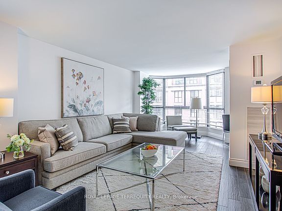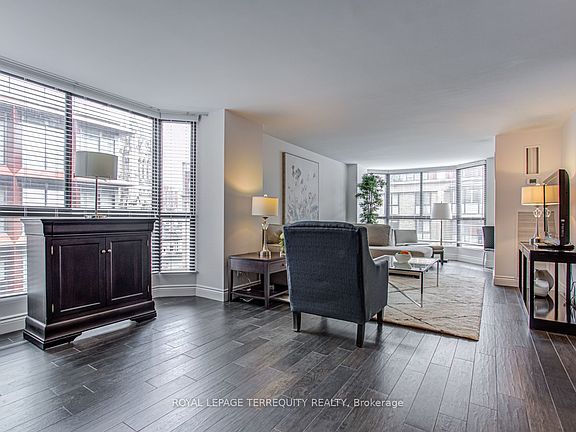 Welcome to an Architectural Digest worthy residence in the heart of the St. Lawrence Market District, where every detail has been reinvented with vision and precision. Nestled within a very private boutique building of just 52 residences, this rare suite offers an unmatched sense of exclusivity and charm. Spanning 1,550 sqf. across multiple levels, the home feels more like a private townhouse than a condo. Natural light floods the dramatic living and dining space-enhanced by an extra bay window unique to this unit -creating an expansive, refined, and endlessly inviting setting, perfect for gatherings that stretch into the night. The chef's kitchen, with its generous eat-in layout and high-end finishes, sets the stage for both everyday ease and indulgent entertaining. The primary retreat is a true sanctuary: oversized and elegant, with a spa-like ensuite featuring a glass shower, a custom walk-in closet, and a private balcony for morning coffee or late-night escapes. A second bedroom and two additional baths offer versatility-whether for guests, a home office, or creative pursuits. Beyond your front door, the best of the city is at your feet. A five-minute walk places you in the Financial District, while parks, theatres, artisanal shops, and Toronto's most celebrated dining scene surround you. This isn't just a home - its a lifestyle, curated for those who expect the extraordinary.