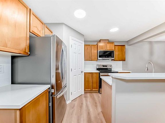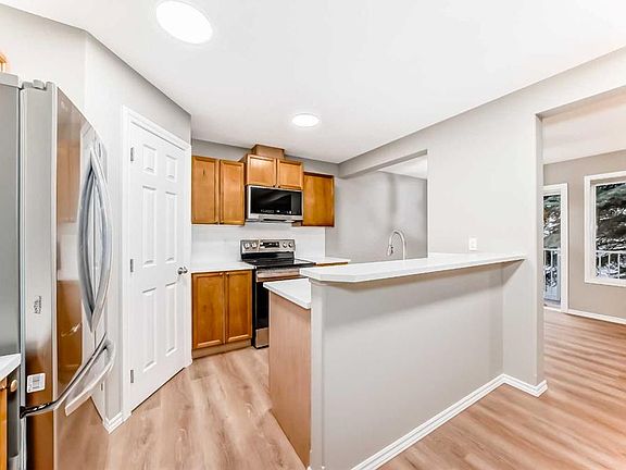 Welcome to this newly renovated three-bedroom condo in the highly sought-after community of Citadel. Tucked away in a quiet cul-de-sac within a well-managed townhouse complex, this home offers exceptional comfort and convenience. Enjoy the practicality of a single attached garage, a full-size driveway, and your own private fenced yard. Inside, you’ll find brand-new flooring throughout, including luxury vinyl plank on the main level that pairs beautifully with the warm maple cabinetry. The spacious kitchen shines with all-new stainless steel appliances, quartz countertops, and a stylish subway tile backsplash. A raised island bar makes entertaining easy, while the generous walk-in pantry provides excellent storage. The open-concept main floor features a large living area with built-in cabinetry and a dining space that leads directly to the backyard through patio doors. A convenient powder room completes the main level. Upstairs, you’ll find new carpet throughout, three well-sized bedrooms, and a fully renovated bathroom. The expansive primary bedroom includes its own walk-in closet, and all bedrooms are equipped with blackout blinds for added comfort. The full, undeveloped basement awaits your personal touch—perfect for future expansion or storage. Citadel is a vibrant, family-friendly community offering plenty of walking paths, parks, schools, and easy access to nearby amenities. Commuting is a breeze with quick routes to downtown Calgary, the International Airport, and the stunning Canadian Rockies. Don’t miss this opportunity to move into a beautifully updated home without the new-build price tag. Contact your favourite Realtor for a private tour today!