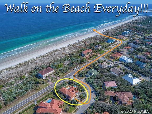 OCEANSIDE SHOWPLACE!!!! TOTALLY REMODELED & ABSOLUTELY GORGEOUS ESTATE HOME WITH HEATED POOL/SPA AND BREATHTAKING OCEAN & LIGHTHOUSE VIEWS!! STEPS TO THE PRISTINE ''NO DRIVE'' BEACH!! This magnificent & spacious Ponce Inlet treasure built of sturdy concrete block construction with barrel tile roof in 2002 is lovingly named ''Sandy Shores'' and defines the ''WOW'' Factor! This stunning gem boasting 4505 sq. ft. is newly renovated from top to bottom in 2019 with brand new top quality amazing upscale features. Electric storm shutters throughout, impact PVC windows, barrel tile roof & security system provide added comfort & peace-of-mind!! Enter this impressive home through the magnificent etched double door entryway and view the light & bright great room with 22' soaring ceilings, new vinyl wood-look flooring, classic French doors, stylish Plantation shutters and custom fans & fixtures. The new chef's gourmet kitchen has exquisite Quartz countertops, raised panel white cabinetry, soft close drawers, full backsplash, breakfast bar & SS appliances. The luxurious master suite has breathtaking ocean views, a 21' awesome oceanfront balcony, enormous walk-in closet with organizers & a master bath fit for royalty!! Spectacular additional upstairs living area has ample space & towering Lighthouse views!! Relax by the heated salt chlorinated pool & entertain your guests on the extensive paver patio. Tropical landscaping designed for low maintenance & maximum privacy borders this well-manicured property. The oversized two car garage, circular driveway, fenced yard & quiet cul-de-sac of luxurious estate homes add to the many desirable features of this elegant residence! Walk or bike to seaside restaurants, historic Ponce de Leon Lighthouse & Jetty Park, Marine Science Center, marinas, charter fishing, dog beach/park & more!! Enjoy Florida coastal living at it's finest!!