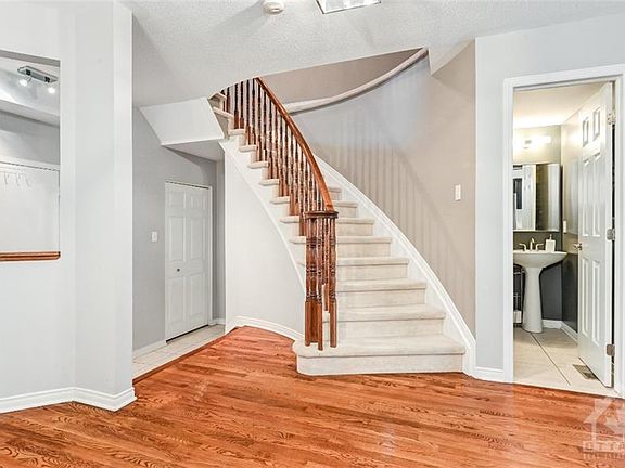 FANTASTIC EXECUTIVE TOWNHOME WITH SECOND FLOOR FAMILY ROOM/FOURTH BEDROOM BACKING ONTO GREENSPACE. This spacious home offers a super functional layout with a large living room, formal dining room that makes a great home office space and an eat-in kitchen. The second level boasts a large family room with gas fireplace, 2 ample sized bedrooms and a Master retreat with walk-in closet and four piece en-suite. The lower level is fully finished with a huge recroom, laundry room and tons of storage. With hardwood floors, quartz counters and loads of space all backing onto green space with walking paths and just minutes to the highway, parks and schools and Kanata centrum with shopping and restaurants this home and location offer exceptional value.