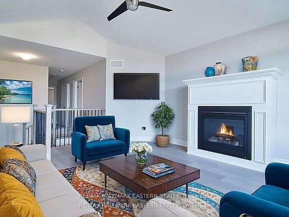 Buy New, Pick your own interior finishes and Move in, in just 60 days. Creekside in Millbrook's most popular model "The Claremount", upgraded elevation B with stone clad front porch and double garage, has been constructed and will be completed inside with your colour choices of hardwood & porcelain tile flooring, kitchen, laundry, and bath cabinetry & counters. (interior pictures shown are virtual staging). Unique to this model is a second storey Family Room featuring a raised ceiling and gas fireplace. The design, by Millbrook's "hands on" quality Builder, Frank Veltri, includes 3 bedrooms, 3 baths, main floor Den, and bright, open concept living, dining and kitchen with quartz counters, potlighting and pantry cabinetry. This is 1951 square feet of finished living space plus unfinished basement with rough-in for a 4th bath. The main floor features include engineered hardwood flooring, 9 foot troweled ceilings and glass sliding door walkout to the back yard. This property is located within the historic limits of the Village, in a small (31 Units) family oriented neighbourhood which, when finished, will include a walkway through parkland to Centennial Lane close to Millbrook's elementary school, Millbrook Valley Trails system and the eclectic Downtown which offers everything you want and need: Daycare, Hardware, Groceries, Restaurants, Auto Services, Computer & other Professional Services, Ontario Service Office, Wellness & Personal Care, Wine & Cheese, Chocolate, Festivals and Community services. Creekside in Millbrook Open houses are hosted at its Model Home at 37 Coldbrook Drive, Saturdays and Sundays, 1 pm to 4 pm except for October 12.