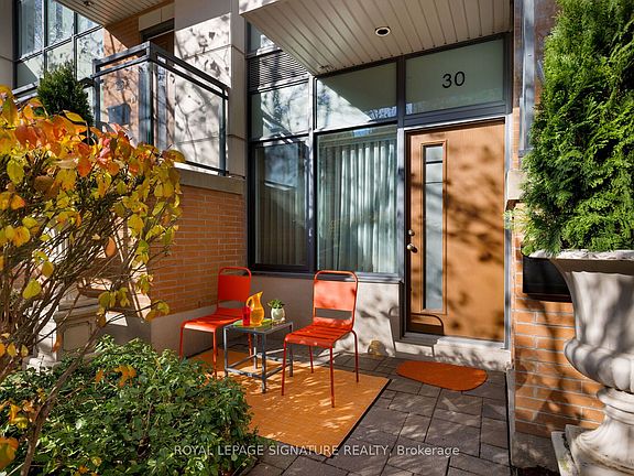 Rarely Offered Modern And Spacious 1-Bedroom TownHome On Cole Street Featuring Two South-Facing Terraces (BBQs Allowed). Enjoy An Open-Concept Layout With Hardwood Floors Throughout And Tasteful, Quality Finishes. The Unit Is Freshly Painted And Features A Renovated Bathroom With Floor-to-Ceiling Designer Ceramic Tiled Shower. The Master Suite Includes A Large Walk-In Closet And A Walkout To The 2nd Terrace. Plenty Of Storage Is Available Inside And Outside (two lockers). This Is The Perfect Alternative To A High-Rise Condo. The Location Offers Unmatched Convenience With Freshco, Tim Hortons, TTC And Much More Just Steps Away. You Are Down The Street From The Aquatic Centre, The New Arts and Cultural Centre, And A 6-Acre Park And Community Centre With A Gym And Indoor Track. Includes An Oversized Built-In Garage With Direct Entry To The Unit. Benefit From Low Maintenance Fees, A 100 Bike Score, 99 Walk Score, and 94 Transit Score. Fantastic Central Location Close To Everything - Just Move In And Enjoy!