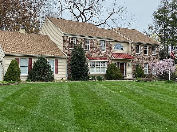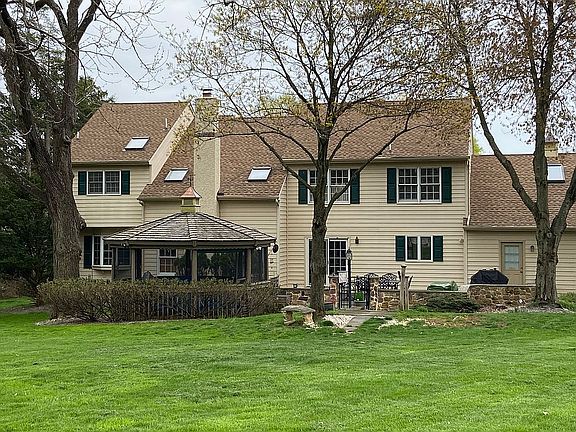Ready, set, MOVE into this lovely, well appointed, meticulously cared for Home, on a corner lot. Upgrades abound, with excellent in-frastructure, on almost 2 acres, with a Chester Springs address. ROOF, new in 2019; H/W HEATER and HEAT PUMP new in 2015, NEW VINYL SIDING in 2012. Enter this Lovely stone-fronted house with two-story tiled Foyer, then proceed to the Living room with Plantation shutters, crown molding, chair rail and hardwood floors. Hardwood continues into the Dining room, also with shutters, crown molding, chair rail and wainscoting. Like to cook and entertain? Your spacious Kitchen includes granite countertops, double oven, built-in dishwasher, and granite island with storage. Also, a built-in desk for your computer, printer, and ample cabinetry. Eat-in space at the island, plus room for table and chairs, which overlook the gorgeous Terrace, Gazebo and sprawling level lawn. The Barefoot Contessa would approve! Hardwood floors continue into the comfy Family room, with 2-story ceiling, gas stone fireplace flanked by windows and served by a skylight. Need to work from home? Adjacent is the Office/ study, also overlooking gorgeous greenery. Powder room and Laundry, with utility sink and cabinets, complete first floor. Entry from laundry is to the 3 CAR attached Garage. Ascend the turned wood staircase, accented with chair rail and wainscoting, to the second level; part of railing overlooks the family room. Carpeted throughout, youll find: the Primary bedroom, with walk in closet and more closet space; Primary bath has double sinks, granite counters, Jacuzzi tub and shower. A second Bath with double sinks, granite, tub and shower combo serve the 3 other bedrooms, all of which have 2 blinds and ceiling fans. At the end of the hall, youll find a Bonus room with built-in counter space, closet and skylight. Use as Play room, craft room, second office or other. There is a full, unfinished Basement with sump pump. As for the yard, its a WOW. Terrace is about 5 years old, with flag stone, surrounded by a half wall of stone topped by flag stone. Who doesnt love eating outdoors in the summertime? But if it rains, or you want a little coverage, theres the adjacent lovely Gazebo - a charming outdoor/covered space. The level lawn is extremely well-kept with some lovely trees. In the back of the property sits a large shed, to accommodate all kinds of lawn equipment, various types of storage. This house is in Downingtown school district, which includes its STEM academy. Its only a couple of miles from lots of great shopping, restaurants, major roads and the turnpike... a sylvan setting in a most convenient spot. This is Chester Springs living at its finest, waiting for the next discerning buyer-YOU.