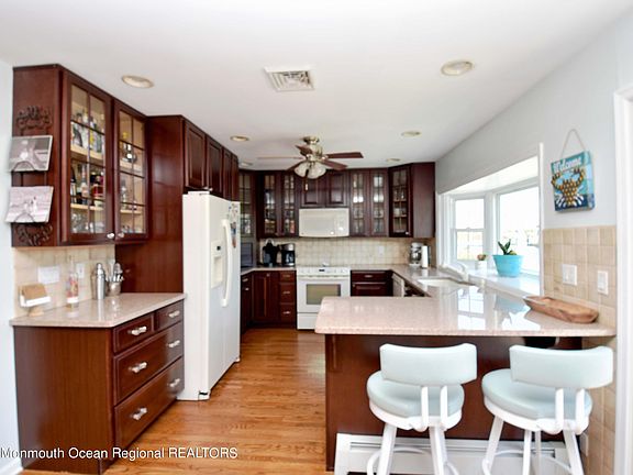 Welcome Home to a boater's haven. This beautiful Open Concept home is perfectly positioned in a deep lagoon, one lagoon away from the open bay and a 10-minute boat ride to the Barnegat Inlet. Experience low-maintenance living with features like a U-shaped stamped concrete driveway, a patio, a Trex deck, an aluminum fenced yard and 13 year old vinyl bulkhead. Immerse yourself in tranquil water views from the kitchen bay window, surrounded by cherry cabinets and granite countertops. The windows, slider, and bay window were recently replaced. Don't miss this opportunity for a summer getaway or a permanent residence!