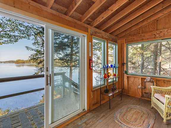The house is perched above the shore in a protected cove enjoying gorgeous sunrises and sunsets. Lovingly maintained by one family since it was built, the home features two first floor bedrooms. The vaulted living room opens onto a screened porch overlooking the water. Two large loft spaces could be used as home offices, sleeping areas, or studio space. A handicap-accessible walkway leads down to the water from the front of the house. The two story outbuilding is insulated and electrified, and could be converted to a separate living area or simply used as a studio or storage. The finishes are older, but the bones of the buildings are in fantastic condition, making it a perfect template to create your dream waterfront oasis.