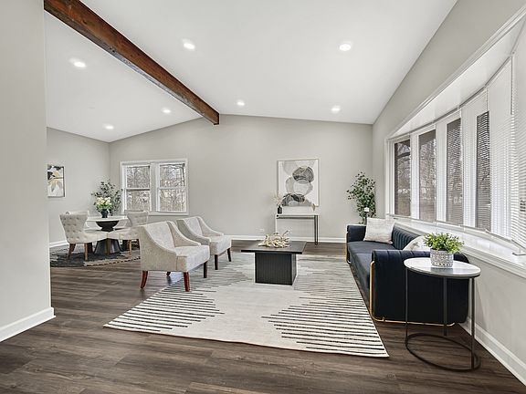 Step into this expansive 4,200 sq. ft. home nestled on a corner lot with mature trees, offering both privacy and ample space for everyone. Boasting 5 bedrooms and 4 bathrooms, this turnkey gem has been thoughtfully updated throughout. The home features two stunning new kitchens, flooded with natural light from sliding doors that lead to two oversized decks overlooking a .88-acre wooded lot with a charming creek. Inside, you'll find a double foyer that greets you upon entry, along with three spacious living rooms. The primary en suite includes a large walk-in closet and a double vanity in the bathroom. The lower level presents a fantastic extended family option with its own kitchen, a large bathroom, two bedrooms, a spacious family room, and a cozy fireplace with access to the lower deck. This property is truly move-in ready, boasting brand new carpet, updated flooring, and beautifully remodeled spaces with new windows and doors. A two-car garage and an RV slip add to the convenience and versatility of this remarkable home. Experience privacy, space, and flexibility all in one-this home is a must-see!