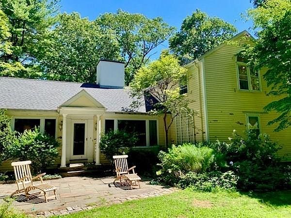 This is a gorgeous and comfortable home. The sprawling floor plan includes a formal living room with fireplace and a lovely dining room. The great room with a cathedral ceiling,fireplace and custom built-ins opens to a lovely white kitchen and comfy breakfast room which looks out onto the deck and abundant lush greenery. Three well sized bedrooms are also on this floor, one ensuite.The second floor boasts a magnificent main suite, with an abundance of light and a loft like feel,beamed ceiling, enormous dressing room/closet, as well as your own private sitting room or study. Hugely functional laundry room with beverage fridge. Mudroom gives you direct access to the garage. Easy access to Boston and all major routes and highways. A super place to hunker down.