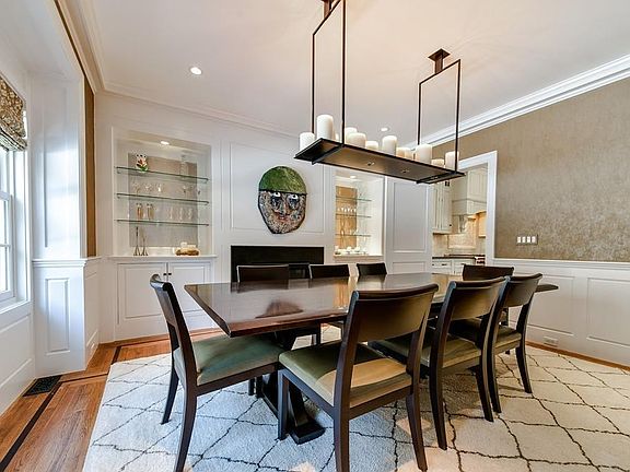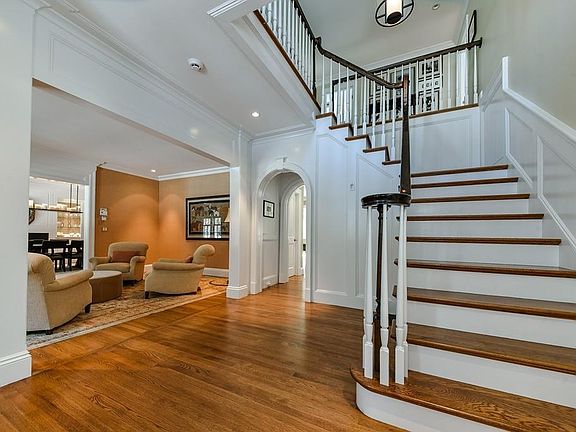 Magnificent center entrance colonial in exceptional neighborhood with 4 levels of living space. Enter the foyer with gorgeous walnut stained hardwood floors into a private study with fireplace. Inviting formal living room flows into fireplaced dining room with built ins of quality mill work. The kitchen with sun filled breakfast nook leads to family room with coffered ceiling, custom built-ins and french doors to blue stone patio perfect for entertaining, and enjoying the level backyard. A lovely slate floor mudroom with cubbies for all, off of a 3 car heated garage. The second floor boasts 5 bedrooms, a master suite with cathedral ceiling, sitting area, and spa like bath. The laundry located on the 2nd floor with dual washer/dryer. A dynamic 3rd floor, great for guests, includes bedroom, full bath and sitting room. Fantastic finished lower level with great ceiling height for recreation, includes wetbar, home gym, full bath. Home has been meticulously maintained.