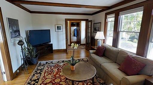 Beautifully maintained, this sunny three bedroom unit has wonderful updates including a kitchen with new cabinets and butcher block counters. The tile bathroom has been updated, yet retains a beautiful classical look. The living room features a beamed natural wood ceiling, and a sun room that offers a cozy setting around a gas log fireplace with original glass front built in bookcases. There is a new in-unit washer and dryer. Additional private spaces include the second level bedroom with a walk in closet, and an enclosed rear porch. Additional large open attic space area awaits your creativity. The wood shingle siding has been recently painted, the entire house was insulated this year, there are replacement windows throughout, and the electrical service has been improved to 200 amps. There is a wood privacy fence surrounding the back yard. There is garage parking with an additional space, a separate basement area, and an unbeatable location with rapid access to Cambridge and Boston.