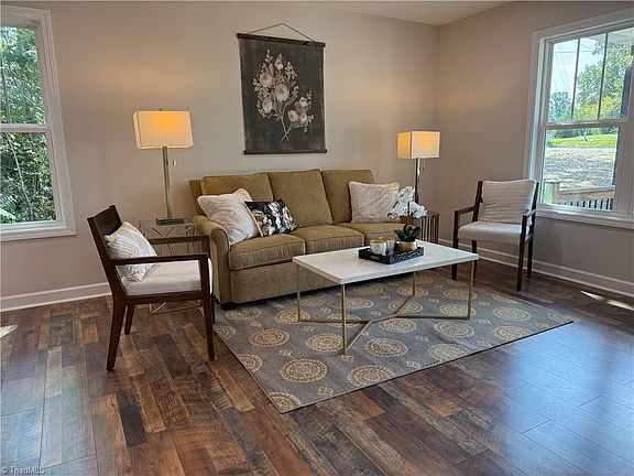Serene view of natureCovered front porchEat-at islandBeautiful barn doorsWalk-in showerOpen-concept kitchenGranite counters
