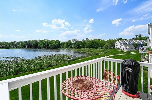It is all about the "Water View", and here there are spectacular views galore of Swarthout Lake. This beautiful townhouse is meticulously maintained in every detail.Custom created kitchen with ceramic backsplash, granite countertops, state of the art stainless steel appliances, living room with sliding door to deck overlooking the lake, formal dining rm. All hardwood floors on main floor. New Carpeting upstairs and in the bedrooms.Master bedroom with walk-in-closet, incredible master bath with separate walk in shower. 2nd bed. and full bath. Lower level new engineered wood flooring and a walk out to the back yard and patio. Laundry room, and 1 car garage. Other amenities include half bath w/new vanity top, indoor speakers, ceramic tile entry foyer, custom window treatments, freshly painted, recessed lighting, dining rm fixture, washer, dryer, garage door opener,BRAND NEW HOT WATER HEATER Close to transportation.Easy access to highways and to New York City. Clarkstown Schools