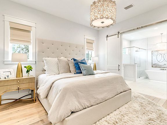 Nestled in the gated Cypress Dunes community on 30A's peaceful west end, this thoughtfully designed 3 BR/2.5BA single level home is perfectly suited as a full-time residence, second home or as a rental property. No detail has been overlooked with standout finishes including brushed oak hardwood floors, custom barn doors, 10 feet ceilings, custom cabinetry and designer lighting. The welcoming and open living area offers plenty of room for entertaining with two sofas and dining table that comfortably seats 6. The fully equipped kitchen offers commercial grade stainless appliances including a gas range and wine refrigerator. Two large porches, one screened, provide ample room to enjoy the warm Gulf breeze. Never rented, additional highlights of this one-owner home are