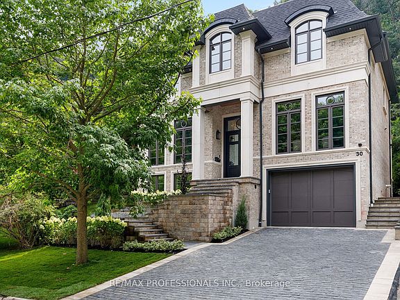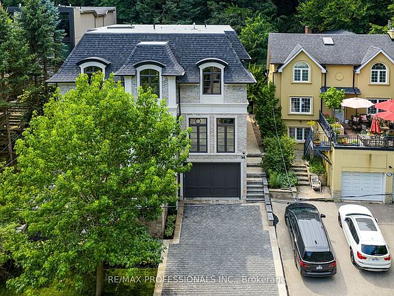 Nestled on a quiet cul-de-sac in a rare, beautiful ravine setting, this 5,000+ sq ft French-inspired estate architecturally refined by Hausworks, built by Atelier Custom Homes and designed and styled by Rizo Lola Designs offers three levels of refined luxury built with the finest curated materials. The main floor features a formal dining room, elegant office, and a stunning open-concept kitchen and family room with high-end appliances, honed quartzite & marble countertops, custom fine cabinetry, a large center island and a breakfast nook with ravine views. The family room, anchored by a limestone fireplace, flows into a sunroom overlooking the ravine. Upstairs boasts four spacious bedrooms, including a serene primary retreat with a grand walk-in closet and spa-like ensuite with oversized glass shower and heated floors. The lower level offers a wine room, wet bar, rec room with fireplace and custom built-ins, radiant heating, a fifth bedroom/office, full bath with steam shower, and gym. The exterior blends aged brick with limestone, professionally landscaped grounds, cobblestone driveway with snowmelt system, Generac generator, custom stone patio/walkway, and in-ground irrigation. Situated on an impressive ravine lot in one of the city's most prestigious enclaves, close to top schools, parks, and major routes, this residence delivers unmatched privacy, elegance, and lifestyle for the most discerning buyer.