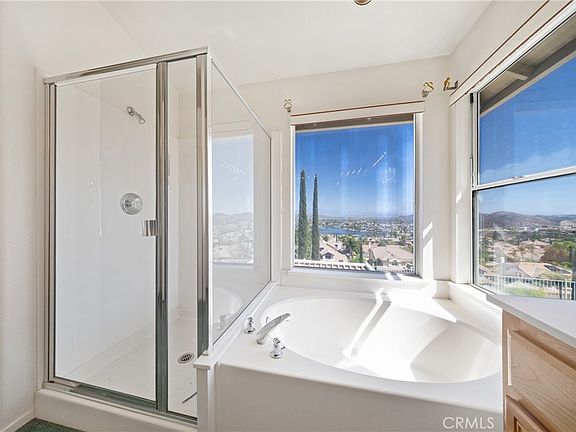 Perched on over ¼ acre in a serene Lake Elsinore cul-de-sac, this stunning 3 bed, 3 bath, 2,153 sq ft home offers sweeping, unobstructed views of Canyon Lake and the valley—truly a rare gem. With soaring ceilings, an inviting fireplace in the family room, a spacious main-floor bedroom, and an oversized primary suite with a private view balcony, this home effortlessly blends comfort, elegance, and California living at its finest. Step inside to discover a bright, open layout designed for both relaxation and entertaining. The beautifully appointed kitchen flows seamlessly into the living areas, while large windows flood the space with natural light and capture breathtaking vistas from nearly every room. Upstairs, the generous secondary bedroom offers flexibility for guests, a home office, or additional family space. Outside, the professionally landscaped yard provides the perfect backdrop for morning coffee, sunset dinners, or simply soaking in the peaceful surroundings. Complete with a 2-car garage and situated in a quiet, well-maintained neighborhood—this is the lifestyle upgrade you've been waiting for.