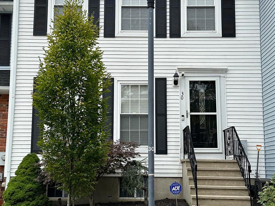 This pristine two-bedroom, two-and-a-half-bath townhouse is situated in a picturesque park-like setting. Numerous upgrades have been made, including renovations to the kitchen with quartz counters and sink, no-touch faucet, recessed lights, under cabinet lights, and soft close cabinets. The bathrooms are updated and hardwood flooring was recently installed on the main level. The spacious, finished basement creates a perfect setting for movie nights by the fireplace. In the warmer months, relax in the tranquility of the fenced, maintenance-free backyard and deck. The primary bedroom measures 15 by 12 feet and features double closets, an ensuite bathroom, and a linen closet. The second bedroom also includes double closets and an ensuite bathroom. The kitchen is generously sized at 21 by 10 feet, while the finished basement spans 22 by 10.5 feet and includes an organized cedar closet measuring 8 by 9 feet. All measurements are approx.