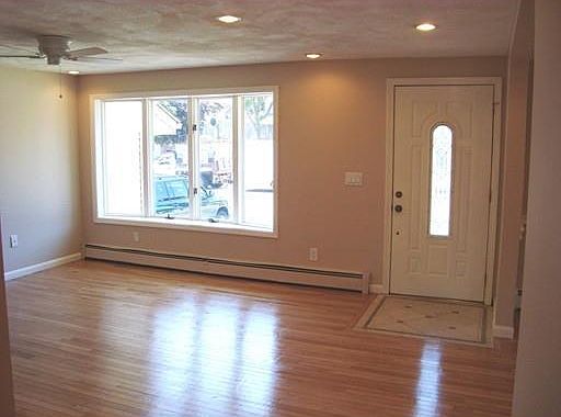 Good sized Colonial in highly desired South Peabody neighborhood. As you enter the front door you walk into the open concept Living Room and Dining Room with refinished hardwood flooring. The eat in Kitchen offers an abundance of cabinets and new granite counter tops, as well as a private laundry room. The Kitchen slider allows you to access the deck and level fenced yard. You will also find 2 good sized Bedrooms on the 1st floor with hardwood flooring and a shared Full Bath. Upstairs there are 2 additional Bedrooms with hardwood flooring. The large Master Bedroom has a walk in closet and oversized Master Bath with separate shower, jetted tub and double vanity. Bedroom #2 has its own private Bath. The Lower Level has brand new carpeting and 2 finished rooms. One room is the Office/Play Room and the other is the huge Family Room with wood stove. This home is in move in condition with low maintenance vinyl siding, economical gas heat, brand new central air condensing unit and 2009 roof.