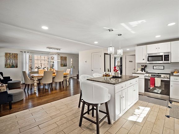 Looking for a home that’s move-in ready, spacious, and offers exceptional privacy? Look no further! This beautifully maintained 3-4 bedroom, 3-bath Cape sits on a picturesque 1.5-acre lot and is ready for its new owners. Step inside to an open and inviting floor plan perfect for entertaining! The sun-drenched family room flows into a stunning kitchen featuring stainless steel appliances, elegant white cabinetry, granite countertops, and a generous island. The first floor also offers a formal dining room, a spacious bedroom, a full bath, and a charming mudroom. Upstairs, you’ll find a large main suite complete with a private en-suite bath, built-in vanity, and his-and-hers closets. Plus, enjoy the convenience of second-level laundry! Step outside and experience the serene backyard, featuring a covered patio, a cozy fire pit area, and plenty of room for gardening. A large, detached garage offers ample parking.
