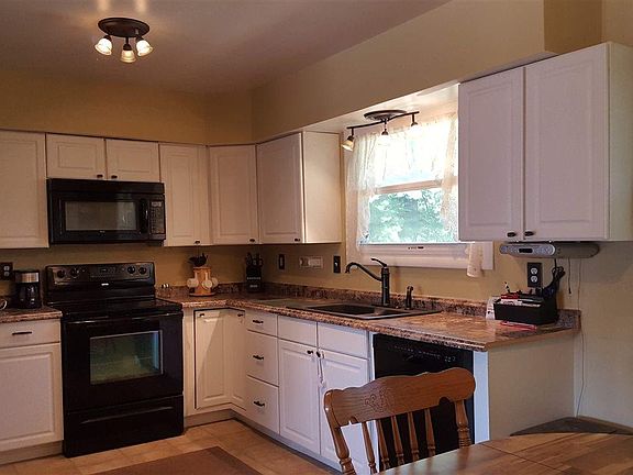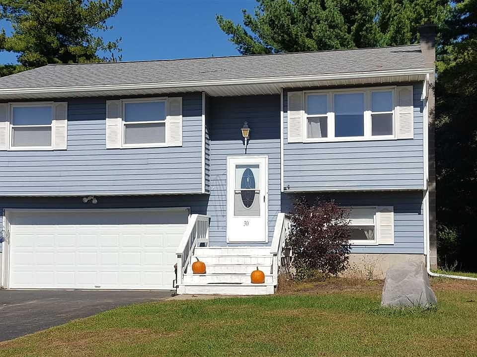 Well maintained 3 Bdrm, 1 1/2 BA Raised Ranch in beautiful setting close to conveniences & NO $ Down USDA eligible too! Recently updated (7 years ago) w/ new roof, windows, doors, appliances, electrical entrance & driveway! New Leach fields and Water Treatment! Large 1/2 bath and laundry downstairs could accommodate shower or tub! Also, chimney & flue for woodstove in Fam. Rm. Private yard backs to County Land for hiking, etc & fabulous view of open field across street! Just move in & enjoy! Don't miss!