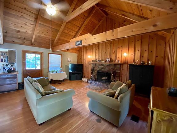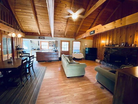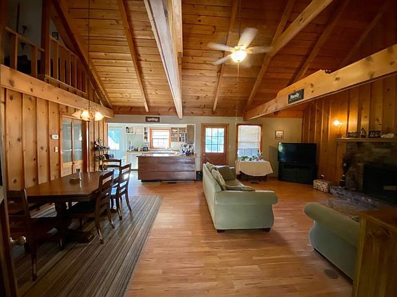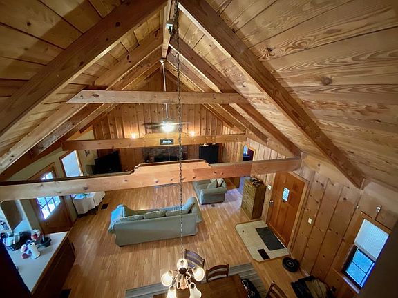 BEAUTIFUL SPACIOUS CABIN IN PRIVATE LOCATION NOT FAR FROM TOWN!!! This is a very large 2 bedroom home with office and loft. Custom pine ceilings and walls with open dining concept. Large back deck and barn/shed with separate fenced in area. 2 acres of beautiful land with mature fruit trees. About 1 acre is fenced and close to one area is woods. Very private yard with very few neighbors on street.