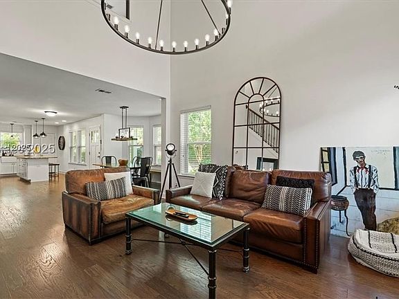 4Bd/3.5Ba townhome ideally situated on a corner lot in Old Town Bluffton. The home boasts an open floor concept offering lots of natural light, vaulted & trey ceilings, high end light fixtures, custom build-ins, shiplap accents, gas fireplace, granite countertops & SS appliances. Private wraparound front porch entrance, extended screened in porch w/separate grilling pad & an upstairs balcony overlooking lagoon. First floor primary suite offers custom walk-in closets and a luxurious ensuite bath. Upstairs offers a versatile loft space and additional storage room. Close walk to shops, restaurants, parks, farmers market & Festivals!