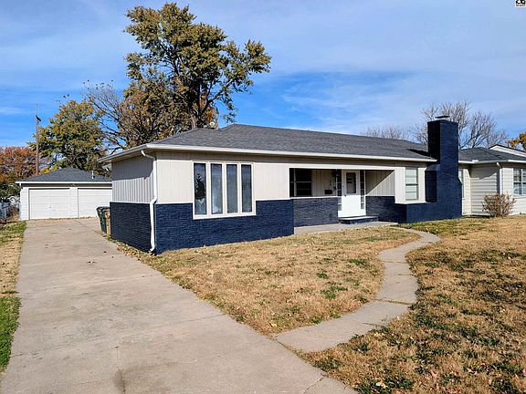 Welcome to this charming 3-bedroom home in Hutchinson, offering 1,641 sq ft of warm character and modern comfort. Beautifully refinished hardwood floors greet you as built-ins and abundant storage carry throughout the home. The spacious kitchen features ample cabinetry and room to cook, gather, and entertain. A large utility room adds even more convenient storage space. Enjoy relaxing mornings on the covered front porch and peaceful evenings on the large covered backyard patio overlooking the fenced yard — perfect for pets, play, or gardening. The oversized 2-car detached garage/shop provides exceptional space for vehicles, hobbies, or projects. Ideally located close to Herman Bunte Park, this home offers easy access to green space, playgrounds, and outdoor recreation. With classic charm, thoughtful updates, and generous indoor and outdoor living areas, this move-in-ready home is a standout value in Hutchinson.