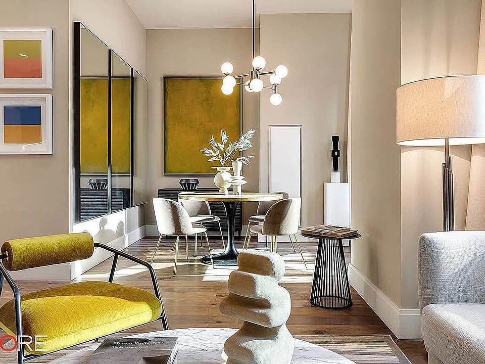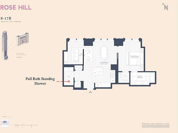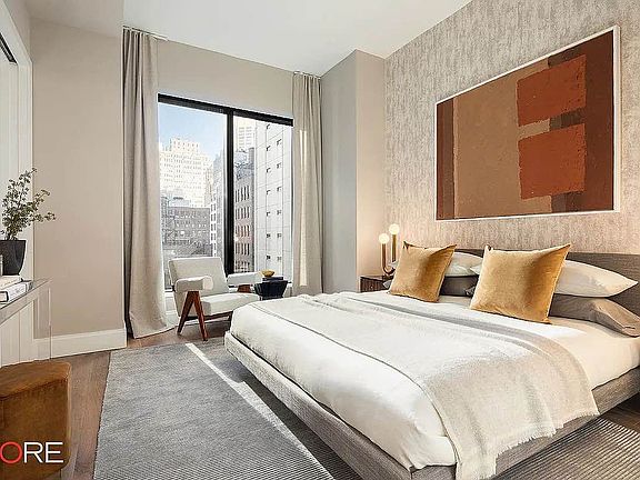 Residence 7B is a 990sqft. 2Bbedroom, 2bath with a fantastic northern view overlooking iconic architecture. Interiors boast rusticated hardwood floors, bronze-finished hardware, and soaring ceilings up to 11 feet high with window heights of 9 feet. The open kitchen with Miele appliances features custom ultra-matte, dark charcoal woodwork, metal-framed glass upper cabinetry, and Calacatta honed marble countertops. Anchored by a custom-designed vanity, the dramatic master bath offers brass-finished fixtures and radiant heated floors in dark, veined marble. Second bath room for guests, ample closet space, and washer/dryers complete this ideal home, which can be augmented with storage available at additional cost. The double-height lobby, with its grand black marble 8-foot fireplace, leads to the jewel-box Blue Room lounge and landscaped courtyard with outdoor seating. Down the spiral staircase awaits a fully equipped gym curated by Fhitting Room, a professional-grade squash court in collaboration with SquashRx, an expansive 50-foot pool surrounded by hand-crafted, green oxide-glazed tiled walls, and a dry heat wellness sauna. Spanning the entire 37th floor, a suite of building amenities includes the Library Lounge with a billiards table, a private dining room, and two covered terraces with spectacular 360-degree views. Rockefeller Group furthers its legacy of pioneering excellence in New York City with Rose Hill, a new residential building. CetraRuddy, Manhattan's premier architecture studio, brings the project to life by combining the elegance and glamour of a classic Gotham aesthetic interpreted in a modern vocabulary for contemporary New York City living. Located at 30 East 29th Street, in the charming and historic Rose Hill neighborhood of NoMad, for which it is named, this iconic and timeless building will rise over 600 feet and feature 121 thoughtfully composed condominium residences. Smoking allowed:No