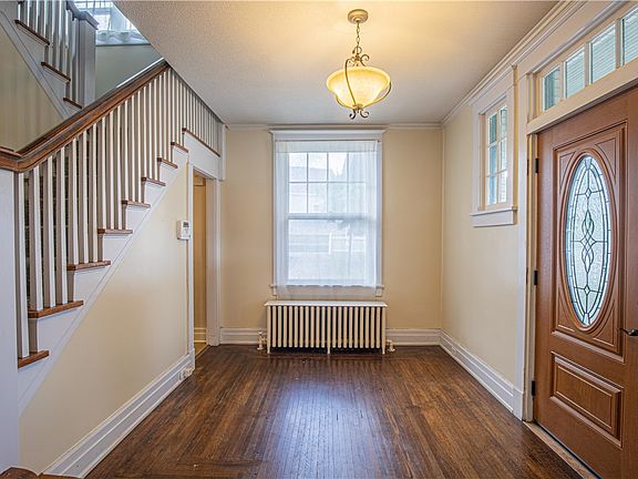 Uniquely charming home situated on a corner lot, located in the city of Uniontown. Concrete driveway turn around with detached garage and fenced in yard. Large rooms with high ceilings. There are 2 living room spaces and a formal dining room setting. A half bathroom on the main level, full bath on the second level and a tub on the third level with the potential to make it a full bathroom. Three bedrooms on the second level and 2 bedrooms on the third level! Hardwood floors and beautiful woodwork throughout the house!