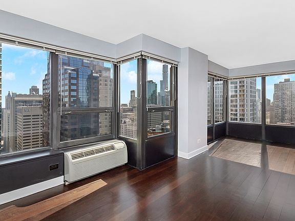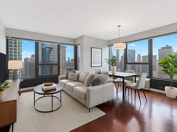 Stunning 2 Bedroom, 1.5 Bath Corner Condo. Perched on a high floor, this sun-filled Southeast corner unit boasts breathtaking lake and city views through expansive windows. Featuring solid Brazilian cherry hardwood floors and premium upgrades in the kitchen and both baths, this home blends style and comfort. Located in a full-service, 24-hour doorman building offering exceptional amenities: a state-of-the-art gym, party room, business center, heated pool with sundeck, dry cleaner, two on-site restaurants, and more. Washer and dryer hookup in unit (tenant to provide W/D).
