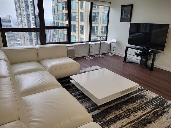Spacious, fully furnished, modern, 1 Bedroom, 1 bathroom apartment in the Heart of River North with Amazing Sparkling City Views! Open Floor Plan & Tons of Storage Throughout the Condo. Kitchen Features Flat Panel Cabinetry, Stainless Steel Appliances & Thick Granite Counters with HUGE Breakfast Bar Open to the Living Room. Bedroom with Tons of Closet Space. HUGE Bathroom with Two Closets, Vanity with Tons of Counter Space & Shower with Glass Doors. New woodplank flooring throughout. Stunning Unobstructed Views Overlooking the City! Everything Right Outside Your Front Door Including New Lifetime Fitness and Whole Foods at One Chicago. Everything from The Mag Mile Shopping, to the Best Restaurants in the City & the Lakefront Path. Bulk Cable Package (Over 180 HD Channels), Internet (250MB), Water & Amenities, electricity billed separately. Outstanding Building Amenities Include 24-Hour Doorman, Award Winning 2 Story Sundeck & Outdoor Pool That Was Just Renovated, Comprehensive Gym, Biz Center, Theater & Party Room. Credit score greater than 700 required. Ready to move in!