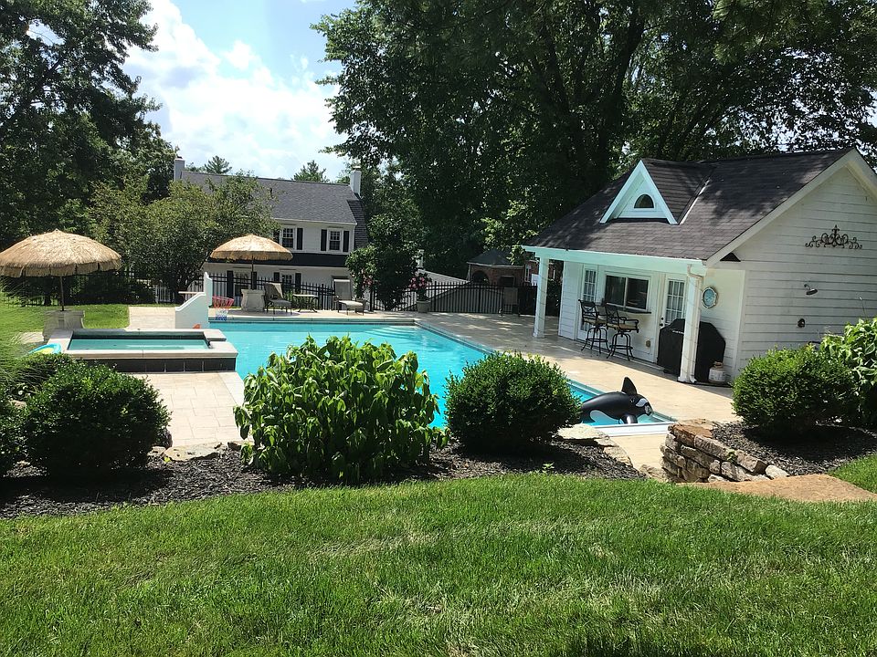 Charming 3 bedroom, 2 1/2 bath home in desirable location. Gorgeous updated gourmet kitchen features custom made cabinets, granite counter tops, 5 burner gas cooktop, double wall ovens, SS appliances, walk-in California Closet Pantry. Master bedroom with en-suite custom bath and walk in California closet. Heated tile floors in all bathrooms. This home features a vacation setting - Beautiful 20x40 gunite pool with electric safety cover, spa and pool house with Murphy bed and 3rd full bath in private back yard. Bright sunroom, relaxing covered porch, charming balcony porches, attractive custom built mantel, gas fireplace,built-in shelves and window seats. Enjoy the convenience of being close to schools, shopping and expressways yet a feeling of being secluded from it all. Newer windows, doors, roof, gutters, hot water heater. Professionally landscaped yard with beautiful low-maintenance perennials. This unique home has beautiful accents throughout with a great deal of character.