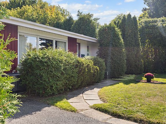 Welcome to 30 Ellery Crescent, a lovely 3 bedroom, 1.5 bathroom home located on a corner lot in the heart of Lynwood Village, Bells Corners. Lovingly maintained by the same owner for 56 years, this property sits on a quiet, child-friendly street. The L-shaped living and dining room features a brick-surround wood-burning fireplace and is enhanced by a large picture window that fills the space with natural light. The adjacent kitchen, updated in 2015 and featuring cork flooring, quartz countertops, ample cabinetry, and room for a breakfast table, provides both function and warmth (fridge replaced in 2021). Three well-proportioned bedrooms and a renovated four-piece bathroom with quartz counters and a linen closet complete the main level, where strip oak hardwood flooring flows throughout most of the space. The lower level offers exceptional versatility, including a spacious recreation room a legal egress window, a laundry area with bar top and sink, and a den that could easily serve as a fourth bedroom, complete with its own two-piece bath. Additional features include a storage room with built-in shelving and a utility room with tiled flooring and space for a workshop. Outdoors, the private back and side hedged yards with slate patio provides the perfect setting for relaxation or entertaining, while the carport offers extra storage convenience. Notable updates include roof (2018), furnace and A/C (2015, contract to be paid out by the seller before closing upon request), hot water tank (2015, rented), washer and dryer (approx. 2020), gutter covers (2013), windows, and central vacuum with attachments. Ideally situated just steps from the Entrance Pool, the NCC Greenbelt with miles of trails, and within walking distance to schools, churches, shops, restaurants, and all the amenities of Bells Corners, this home offers both comfort and convenience. Quick closing is available!