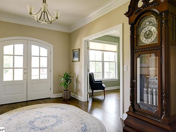 Custom built and conveniently located just off State Park Road, 30 Enoree Farm Way is located in the popular Taylors neighborhood of Silver Meadows. The large front porch, double front doors and elegant, gracious foyer welcome you. A home office is immediately on the left through custom stained glass French doors. This room can serve as the 4th bedroom since it has a closet and access to a full bath. Beyond the foyer the central hallway draws you back to the heart of the home. Here you will find the large great room featuring a beautiful gas log fireplace flanked by built in cabinets and shelves, the dining room with windows on three sides, the beautiful chef's kitchen with massive island, and space for a breakfast area. Behind the great room is a cozy sunroom with access to the deck and steps leading down to the large patio with a natural gas stone fire pit and cedar pergola. This open concept floor plan features a split bedroom plan, with the large master suite privately located at the rear of the house. The suite has large double walk in closets and a spa-like master bath with separate vanities, large tile shower and soaker tub. Two additional bedrooms and two full baths are located along the central hallway. Here you will also find the handy drop zone where you enter the home from the extra long garage, big enough for the largest vehicles. Don't miss the big walk in pantry and laundry room with storage cabinets and utility sink. A special surprise is at the end of the sidewalk that takes you from the patio to a door at the rear left corner of the house. Here is a 24' x 11' completely finished room with central heat & air, electricity, concrete floor and a half bath. The possibilities are endless - you may want to use it as the workshop it is currently set up for, or perhaps a fun rec room, exercise room or man cave. So that you will never be at the mercy of bad weather, there is a full house natural gas generator. An expanded, custom irrigation system will keep your lawn beautiful year round. Why wait for someone else to make this their home - it can be yours but you need to act quickly. Come visit 30 Enoree Farm Way today!