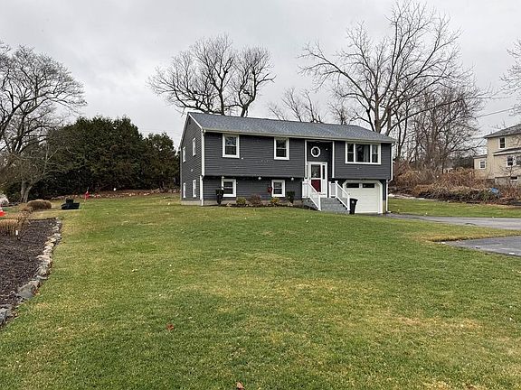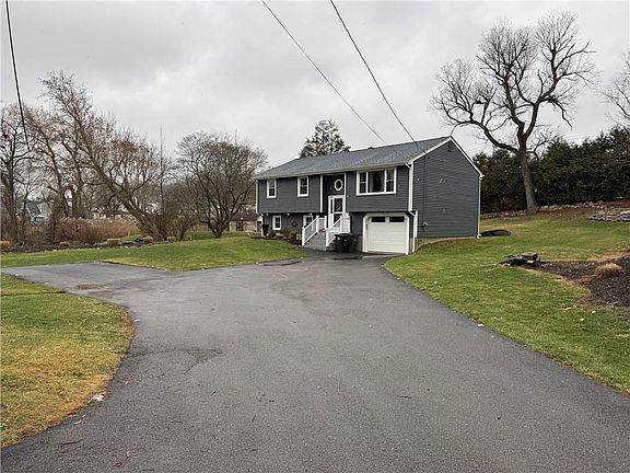 Completely renovated inside & out in the last 5 years — feels like new construction! This 4-bedroom, 2 full bath Raised Ranch is nestled on a private, generous lot at the end of a peaceful dead-end road. Everything is new: new kitchen, bathrooms, roof, vinyl siding, windows, furnace, central AC, water heater, flooring, lighting, appliances, deck, paint, doors, garage door, garage door opener, gutters & more! The main floor boasts 3 spacious bedrooms, large living room, gorgeous eat-in kitchen w/ new cabinetry, tile backsplash, granite countertops & new appliances, plus a newly renovated bathroom (2023) w/ walk-in tile shower, tile flooring, vanity & more. The entryway has also been remodeled w/ pretty leaded-glass door & sidelights, new tile, oak stairs & wrought-iron railing. More living space downstairs - excellent In-Law potential! The walk-out LL is perfect for multi-generational living, guests or entertainment w/ a new family room & dining area, 4th bedroom & full bath w/ walk-in shower. A laundry room/utility room & spacious 1-car garage complete this level. The home’s exterior matches its interior charm! Enjoy the new Trex deck w/ vinyl railings & solar lights, manicured lawn w/ 30-yard golf tee to green, fresh landscaping, new stone wall, new driveway & new vinyl stair-rail entry. Wired for a generator, public water & sewer (assessment paid). Don’t miss this exceptional home — just move in and start making memories!