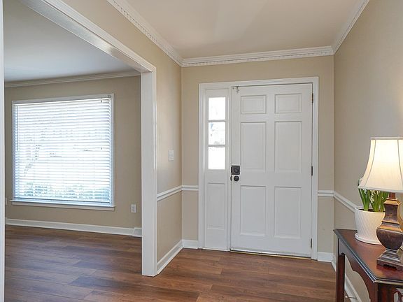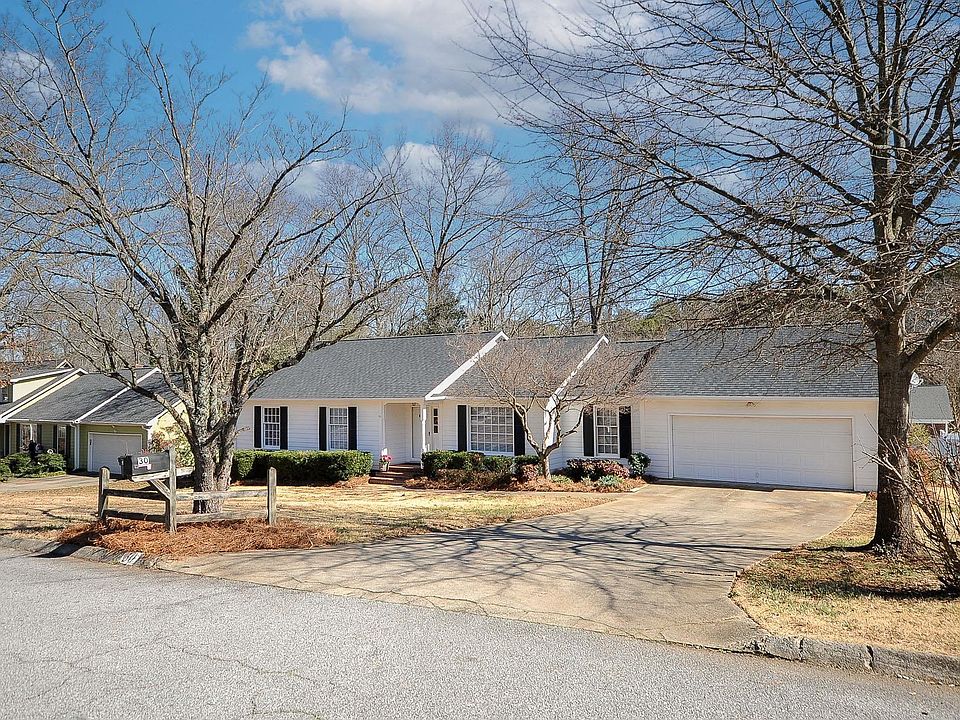 One level home zoned for award winning schools and conveniently located to business and shopping. This would be the perfect starter home, but also great for those looking to downsize. You will love the LVP flooring throughout with nice neutral colors and crown/dental molding in much of the home as well. The kitchen features updated fixtures, plus a smooth top oven and eat in breakfast room overlooking the large back deck and fenced back yard. The room sizes are generous and include a formal dining room/office area as well. The family/living room has a woodburning fireplace with brick hearth and back door access to the sizable deck that is perfect for outdoor entertaining. The master bedroom features a walk in closet and private bath as well as ceiling fan and crown molding. Not a stitch of carpet in the home! Other features include a walk-in laundry room, workshop in the two-car garage, newer H2O heater, and architectural roof that was newly installed in 2021 (per seller).