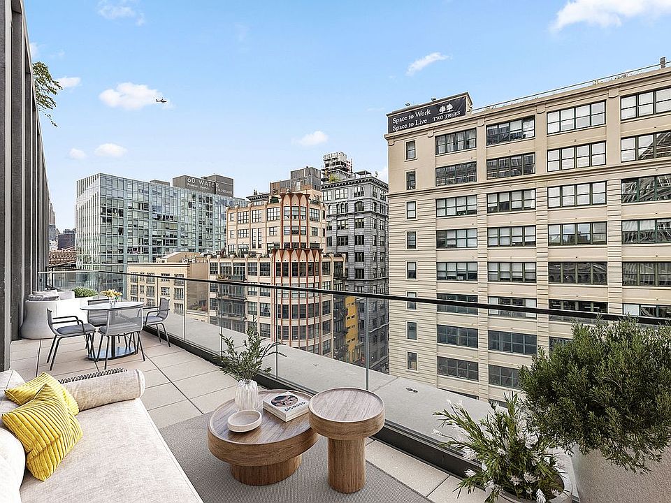 Introducing Duplex Residence 12C. With ceilings soaring up to 18'-6 ", this three-bedroom, three-and-a-half-bathroom residence offers an impressive 1,204 SF private terrace with direct views of the Manhattan Bridge and East River.