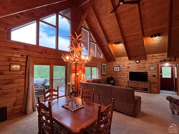 Stunning three level Alta Log Chalet located in the desirable Botti Development. Perfectly situated with the best view of the Hunter Mountain Slopes, Fireworks Displays and those beautiful Fall Colors. The home's warm wood and wall of windows is classic and elegant. A lovely entry way guides you into a large light filled Living Room. Floor to ceiling double height windows to take in the views and a cozy Harmon pellet stove to warm you on winter nights. Three bedrooms, two bathrooms, large kitchen and dining area. Two bedrooms and bathroom on the first floor. Spacious private master bedroom and master bathroom upstairs. Walkout lower level with ski room, family room, wet bar, playroom, bathroom and two bonus rooms. Zoned propane heat, central air conditioning, on demand tankless water heater. Large deck that faces toward the Slopes with a Sunsetter awning. Tasteful nature and mountain motif throughout the home. This home has been meticulously cared for and landscaped. Turnkey and sold mostly furnished minus some personal items. Hunter Mountain is not just for winter sports, year round activities including golf, hiking, biking, swimming lakes, musical events, plays, just to name a few. Move in condition.