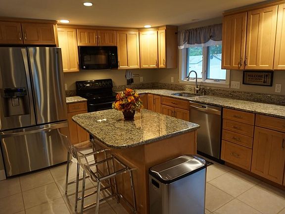 - Kit Dscrp: Countertops - Stone/Granite/Solid, Flooring - Stone/Ceramic Tile, Kitchen Island, Recessed Lighting