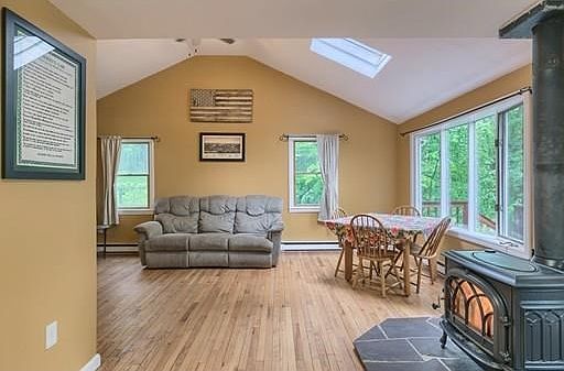 What a setting for this 3-4 bedroom home in Merrimac MA on nearly 2 acres! Open floor plan, family room with cathedral ceiling, sliders to 16'x20' beautiful mahogany deck that overlooks expansive yard, forest and views. Kitchen with breakfast area and island plus dining room and formal living room on first floor plus a bonus room with closet near 2nd full bath for inlaws, office or playroom. Hardwood on most of first floor. Three bedrooms upstairs include large master and two more good-sized bedrooms with full bath. Two-car garage. Wood stove 2015. New well pump June 2017. Large basement. Close to Routes 495, 95, the beach and Lake Attitash! Pentucket School System. Skylights and layout make this home brighter and larger than you'd expect. Come see it today!
