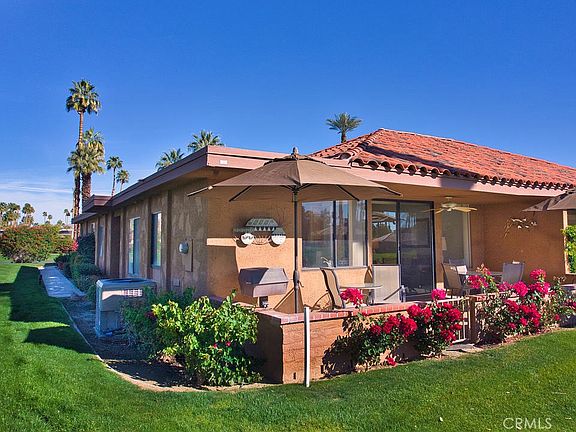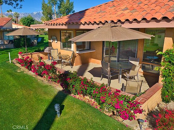 Discover the charm of this beautiful 2-bedroom, 2-bath plus den, Barcelona condo, spanning over 1600 sq ft at Sunrise Country Club. Enjoy breathtaking views of the golf course and majestic West-facing mountains. Ideal for those seeking a serene retreat in a prestigious community. The open and bright kitchen with custom cabinets, Sub Zero refrigerator and breakfast bar. Wet bar is open to both living room and den. A separate den could be used for an entertainment room, reading space or just lounging. The separation of bedrooms allows privacy while entertaining guests. Two spacious bedrooms, both with large wall-to-wall closets. Primary bath has walk-in tub. Indoor laundry and a 2-plus car garage. Sunrise Country Club has an 18-hole executive course and is also well-known for its Tennis Club. multiple community pools and spas. A newly renovated fitness center, bocce ball courts, and pickleball courts complete the variety of activities offered. The recently renovated clubhouse offers fine dining as well as a casual lounge. In addition, downstairs is the Grill for more casual dining. Sunrise Country Club is close to Eisenhower Medical Center, The River, El Paseo which is known for great restaurants and shopping.