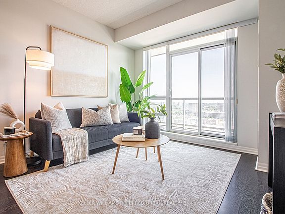 Welcome to this beautifully designed 2-bedroom + den, 2-bathroom condo in the heart of North York! With soaring 9-ft ceilings, a smart and functional layout and floor-to-ceiling windows in every room, this home is bathed in natural light. Each room offers walkout access to a spacious private balcony showcasing breathtaking panoramic views including the iconic CN Tower. The versatile den provides endless possibilities, whether as a home office, cozy reading nook, or even a third bedroom, making it a space that adapts to your lifestyle. The maintenance fee conveniently covers heat, water, central air-conditioning, building insurance, parking, and a locker. Residents also enjoy 24-hour concierge and security along with an impressive collection of resort-inspired amenities: a fully equipped gym, relaxing sauna, indoor pool, rooftop lounge, BBQ area, private movie theatre, games room, guest suite, car wash, bike storage and ample visitor parking designed for both comfort and entertainment. Perfectly situated in an exceptional neighbourhood, this condo offers unmatched convenience with direct access to Fairview Mall, Highway 401 & 404, Don Mills Subway Station and the TTC terminal making everyday living and commuting effortless.