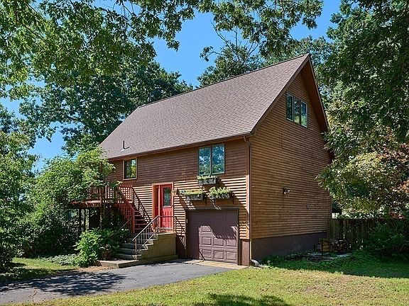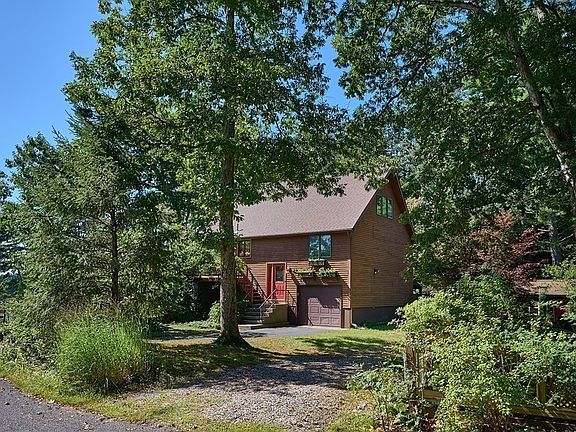 Surprise! A value-added A-frame Cape with both southerly views over the privately owned Beaver Lake AND a lakefront lot including 4-season cottage with large deck and metal dock for year-round fishing, swimming or boat launching. The 1864 SF main house touts central air, 3 bedrooms, 1.5 baths and a one-car garage. The open-concept great room with cathedral ceiling encloses the kitchen/dining and living areas; you’ll love the south-facing lake views and natural light from the Palladian window and the two slider doors which offer two-point access to the exterior wrap-around deck. On chilly days, enjoy the wood stove in the great room, or the gas stove in the 1st-level family room, which also features copious built-ins, a small office, laundry, wet bar and separate entrance leading to an enchanting private patio that’s perfect for entertaining. Other bonuses include a plethora of specimen plantings and a separate, 20' by 12' artist's studio with electricity, propane heat and A/C.