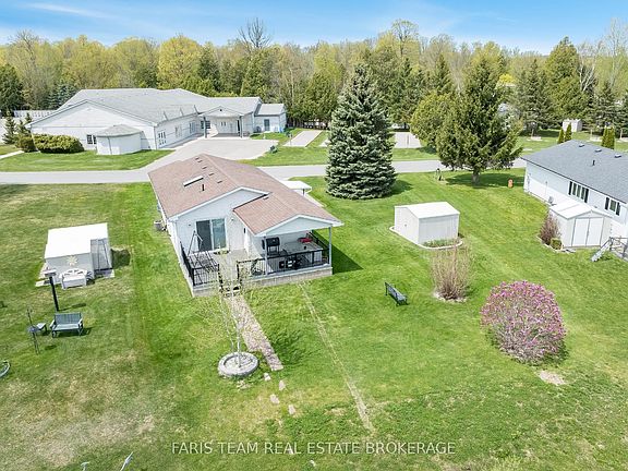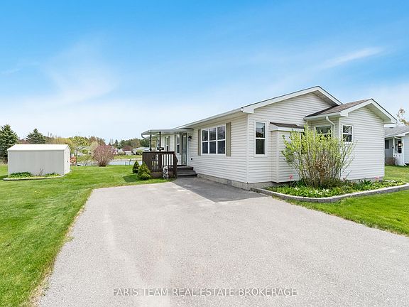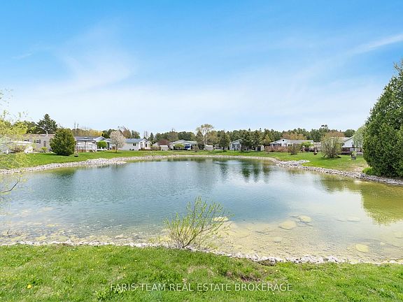Top 5 Reasons You Will Love This Home: 1) Enjoy unobstructed water views right from your doorstep while being directly across the street from a recreation centre offering a heated indoor pool, fitness studio, library, billiards, and more, along with bocce ball courts, horseshoe pits, and walking trails, located outside, making this one of the most desirable spots in Park Place 2) Relax on the oversized 10x25 partially covered deck, perfect for soaking up both sun and shade, while year-round pond views and backyard wildlife create a peaceful retreat, with a built-in sprinkler system that keeps your landscaping lush and vibrant with ease 3) The home delivers two spacious bedrooms and two full bathrooms, including a principal suite with a jetted tub and separate shower, while the freshly painted second bedroom opens directly to the deck, ideal for guests, an office, or a creative space 4) This home features a granite-topped kitchen with a walk-in pantry, vaulted ceilings, a cozy gas fireplace, a new skylight in the second bathroom, California shutters throughout, and a convenient laundry room, with significant updates including, a five-year-old furnace and central air, a two-year-old hot water tank, a one-year-old skylight, and a brand-new sump pump (2025) for peace of mind 5) The wide lot provides enough space to add a garage or carport, while the sought-after 55+ Park Place community gives you a welcoming neighbourhood, organized activities, and proximity to shopping, restaurants, the sandy beaches of Wasaga, and year-round fun in Collingwood and Blue Mountain. 1,109 above grade sq.ft.