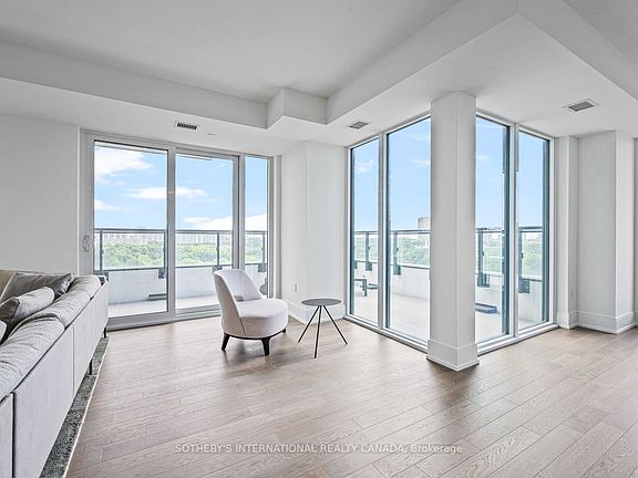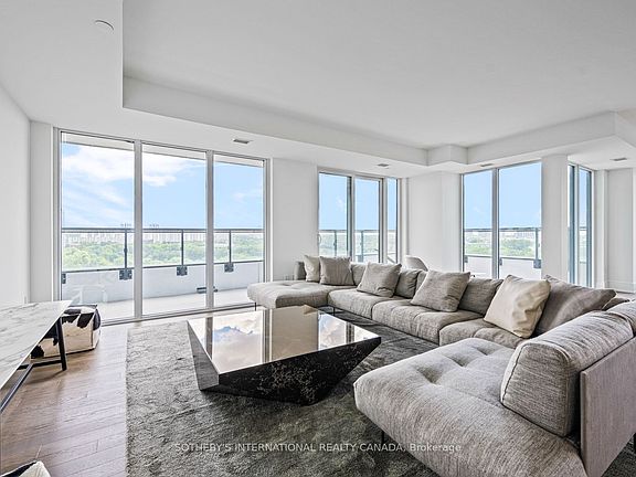 Explore sophisticated urban living in this newly built 3-bedroom, 3-bathroom, 2100 sq ft (approx) executive suite w/ 2 parking spots (1 EV parking) in one of the most luxurious developments in the city (*unfurnished option*)! Ideal location, Auberge on the Park is Surrounded by Toronto's most exclusive North York neighbourhoods! Boasting a luxurious art deco design & essential amenities this residence promises a distinctive blend of class, comfort & convenience. This sunlit corner suite boasts an array of floor-to-ceiling windows providing an abundance of natural light & breathtaking southeast views of the Toronto Skyline. Experience luxury living in this thoughtfully designed condo featuring an open-concept flr plan, seamlessly blending the living, dining, & kitchen areas, perfect for both entertaining & daily living. The flow continues outdoors w/ 2 oversized terraces (approx 700 sq ft) overlooking Toronto, offering exceptional exterior living spaces. The chef's kitchen features high-end Miele appliances, an oversized island with a quartz waterfall feature & counter top, breakfast seating, custom quartz backsplash & ample cabinetry. Enjoy 3 spacious bedrms, including a primary suite with a 5-piece ensuite, large walk-in closet and a double closet w/ stunning south views, while the 2 additional bedrms, each with their own walk-in closet & picturesque east views, are thoughtfully situated on the opposite side of the unit for added privacy. Additional features include: 9ft ceilings, luxury hardwood floors throughout; an ensuite laundry room, ample storage space & pot lights. Enjoy seamless access to the LRT, Shops at Don Mills, restaurants, big box stores & parks. Seize this incredible opportunity to make Auberge on the Park your home! Outstanding resort like amenities featuring an outdoor pool, cabanas, whirlpool spa, rooftop garden/terrace w/ bbq area; state of the art gym w/yoga & spin studios; lounge area; party rm; private dining rm; 24 hr concierge & pet area.