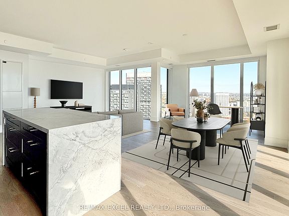 Proudly Built by Tridel - Auberge On The Park. One year new 3-bedroom, 3-bathroom luxury suite offering 1,559 sq.ft. of open-concept living space with 9-ft ceilings. Located on the 34th floor, this unit features floor-to-ceiling windows and a private southeast-facing balcony with unobstructed views.Modern kitchen with integrated, energy-efficient 5-star Miele appliances, contemporary soft-close cabinetry, and in-suite laundry. Includes 2 parking spaces with EV charging. Prime Leslie & Eglinton location, steps to Eglinton Crosstown LRT, minutes to DVP, Hwy 401, and Downtown Toronto. Close to Sunnybrook Park, CF Shops at Don Mills, restaurants, schools, and trails.Perfect for those seeking a combination of luxury, convenience, and nature-inspired living. **Virtual Staging has been applied**