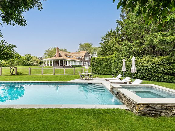 Available for the first two weeks of July ( 1st through 14th ) for $125,000.00 In East Hampton's Georgica Estate Section, a prestigious A+ location just off Lily Pond Lane a beautifully built traditional residence is tucked away down a long private driveway past a wildflower field. Hear the Atlantic Ocean from this classic Hamptons shingled home on 1.3 acres,.6 miles to Georgica Beach past nature preserves and celebrity homes. This elegant, luxurious home features 5 bedrooms and 6 baths. Rich custom millwork and wood beams throughout frame the dramatic double height living room with an oversized fireplace which flows out through French doors to the columned wide porches with seating areas overlooking the lush lawns. Additional features include a custom chefs kitchen, a cozy window seat breakfast nook, a formal dining area/charming sun-room, library, bar, and a two-car garage. The quintessential Hamptons retreat, just minutes to the village near one of the most sought after beaches in the Hamptons.