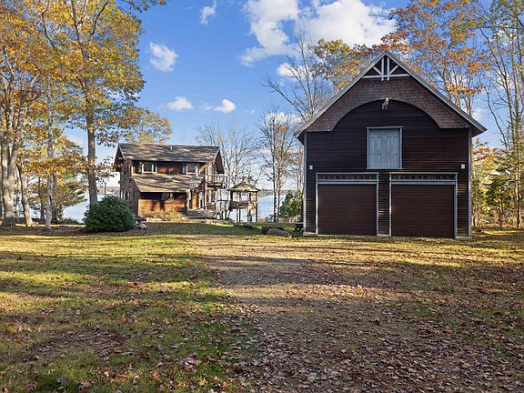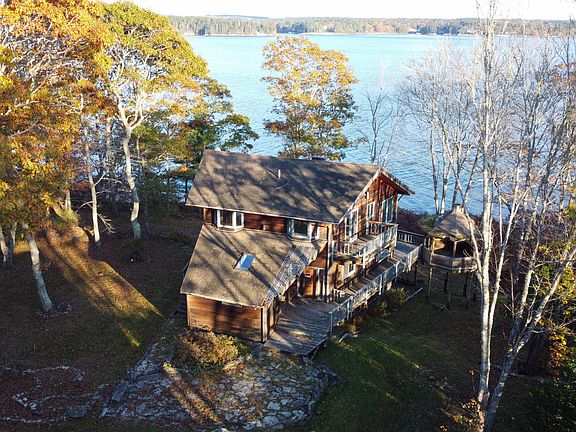 with 219 ft of deep water frontage on the Sheepscot River. The glass fronted open concept house sits high on a bluff and boasts incredible views of the river out to the open Atlantic. Enjoy your own sandy beach and dock and 2 deep water moorings. The barn/garage has two roomy bays with storage above .
