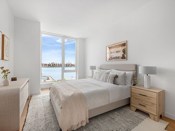 Welcome home to 30 Kent Street. Greenpoint's new luxury waterfront rental building. This spacious 1 Bed, 1 Bath with a private balcony is ideally laid out for living and sleeping. The unit is equipped with wide plank hardwood flooring, custom cabinetry, integrated kitchen appliances, floor-to-ceiling windows, Porcelanosa tile in the bathrooms, and a Bosch W/D in the unit. 30 Kent Street provides residents with sweeping views of the Manhattan skyline and is only steps away from WNYC Transmitter Park. 30 Kent Street offers studio, one- and two-bedroom units. Amenities include The Deck, an expansive outdoor space, The Garden, and a fitness center. Residents can enjoy The Loft, a private area with couches, desks, and individual workspaces. No amenity fee. The virtual doorman is powered by the Carson app. Limited interior and exterior parking spots are available.