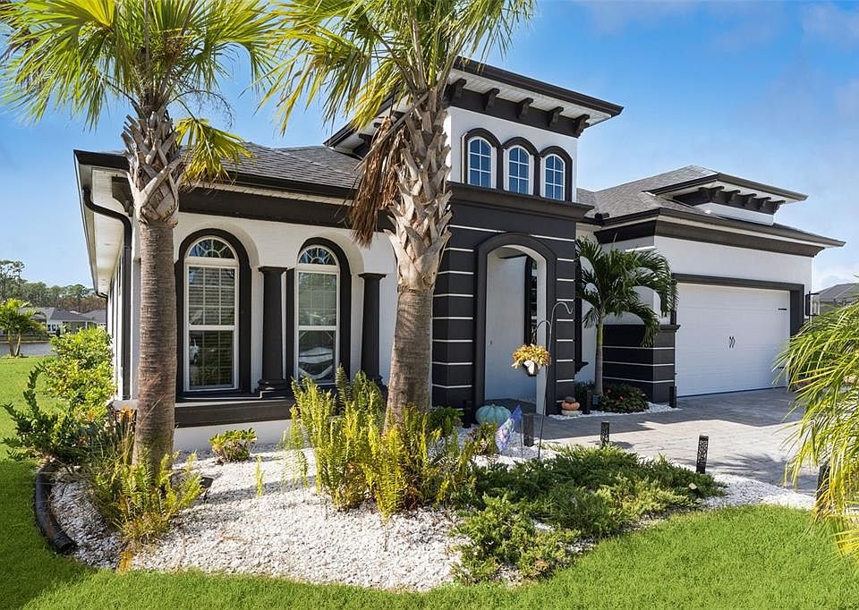 Welcome to a custom-built masterpiece of modern Florida living, completed in 2023 within the prestigious Plantation Bay gated community. Every detail of this one-story residence reflects thoughtful design and upscale living. Enjoy breathtaking water views, an entertaining pool with tanning ledge, fountains, and a heater/cooling unit, a summer kitchen, and a spacious outdoor living area that make this home perfect for gatherings and relaxation. An oversized 3-car garage with raised ceilings designed for car lifts, plus generous workshop space and built-in storage for tools and gear. Tucked away on a peaceful cul-de-sac, this home delivers both privacy and exceptional value. Inside, an open-concept layout welcomes you with natural light, a flex room for a home office, gym, or media space, and a chef-inspired kitchen with granite countertops, recessed lighting, a hidden pantry, and a large island overlooking the living room and pool. The primary suite is perfectly positioned for comfort, complemented by luxurious finishes and direct access to the lanai. Beyond the home, enjoy the Plantation Bay lifestyle—championship golf, tennis, pickleball, resort-style pools, fitness and spa facilities, and a brand-new clubhouse. With Flagler and Ormond Beaches, shops, and medical centers just minutes away, this home defines Florida luxury living at its best.